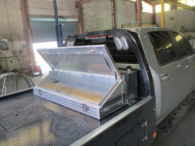 The AT90L-TT, the aluminum 90 gallon auxiliary tank & toolbox combo is the most popular L-Shape Tank & Toolbox Combos. The AT90LTT is designed for full size diesel trucks only. Comes standard with duel fuel fill necks for faster fueling.