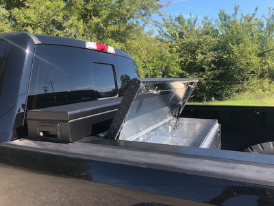 The AT34TT-RT is the designed to fit a Short Bed Truck with a Roll-Top Bed Cover (NOTE: Must be notched for a short bed RAM). The aluminum toolbox is a single lid design with duel paddle latches and is bolted to the top of the 34 gallon auxiliary tank. The toolbox is 10" tall x 10" wide x 57" long. The 34 gallon tank is constructed from .125 gauge aluminum and is fully baffled to prevent fuel slosh. The AT34TT-RT is designed to fit a RAM, Ford, or GM fullsize long bed diesel trucks and Ford & GM fullsize diesel short bed truck. Must be Notched for RAM diesel short bed.