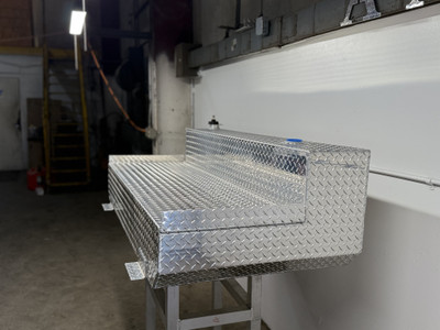 The AT90L-TT, the aluminum 90 gallon auxiliary tank & toolbox combo is the most popular L-Shape Tank & Toolbox Combos. The AT90LTT is designed for full size diesel trucks only. Comes standard with duel fuel fill necks for faster fueling.