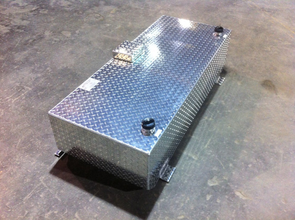 The AT92R-BR, the 92 gallon rectangular below rail tank is designed to work with a hard or soft bed cover. The highest portion of the tank will be below the bed rails. The AT92R-BR will fit a long bed diesel truck only. The AT92R-BR is the largest aluminum auxiliary diesel tank for the Under Bed Cover Tank Line. The duel fuel fill neck are located in the rear driver & passenger side corners for easier filling with an open bed cover.